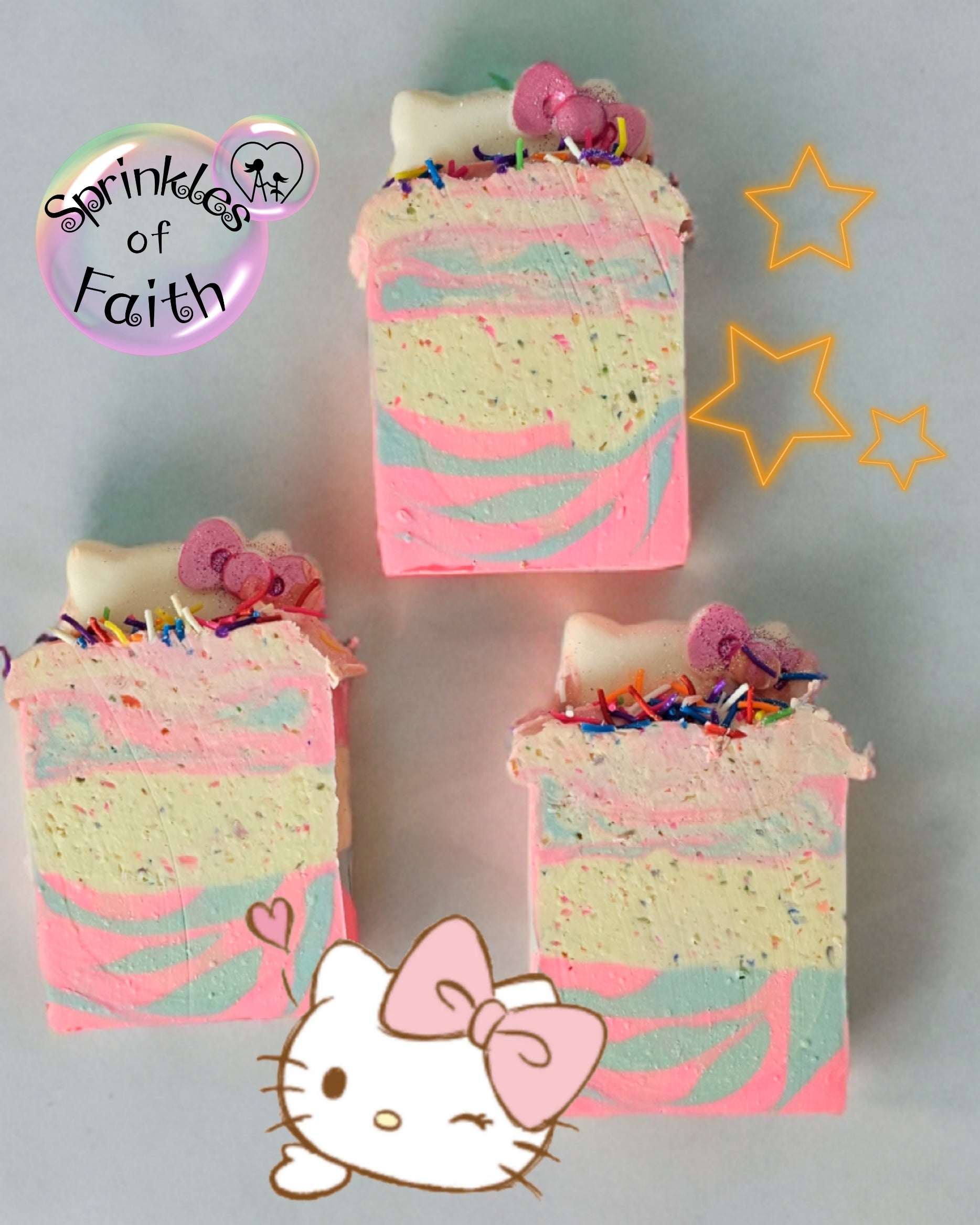 This soap is bursting with sweet fruity magic, fizzy candy vibes, and a soft cloud of vanilla sparkle — like stepping into a dreamy candy wonderland!