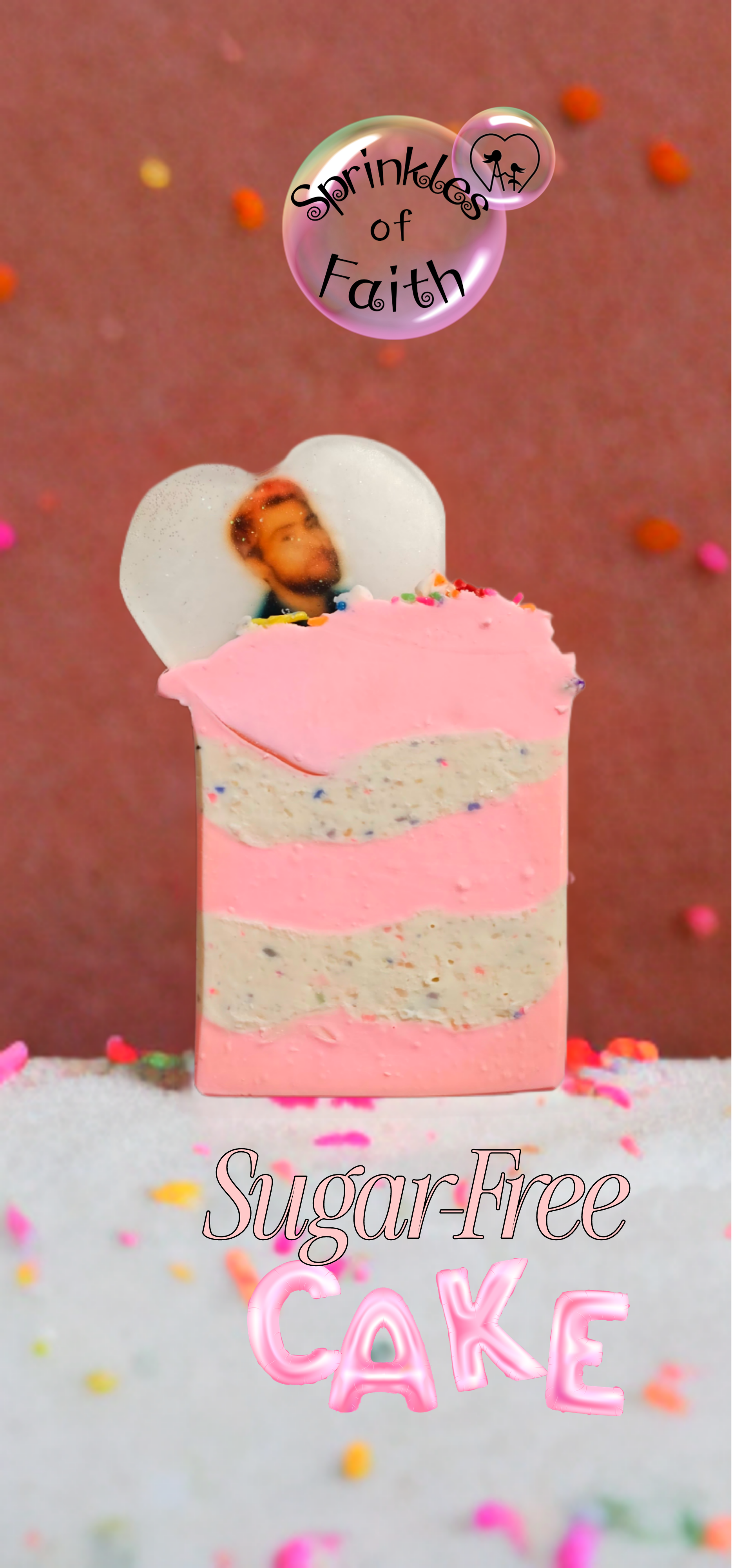 Indulge in the sweet, vibrant delight of Sugar-Free Cake Soap! This beautifully layered soap features playful pink and sprinkle-speckled designs that mimic a slice of celebratory cake—without the calories.