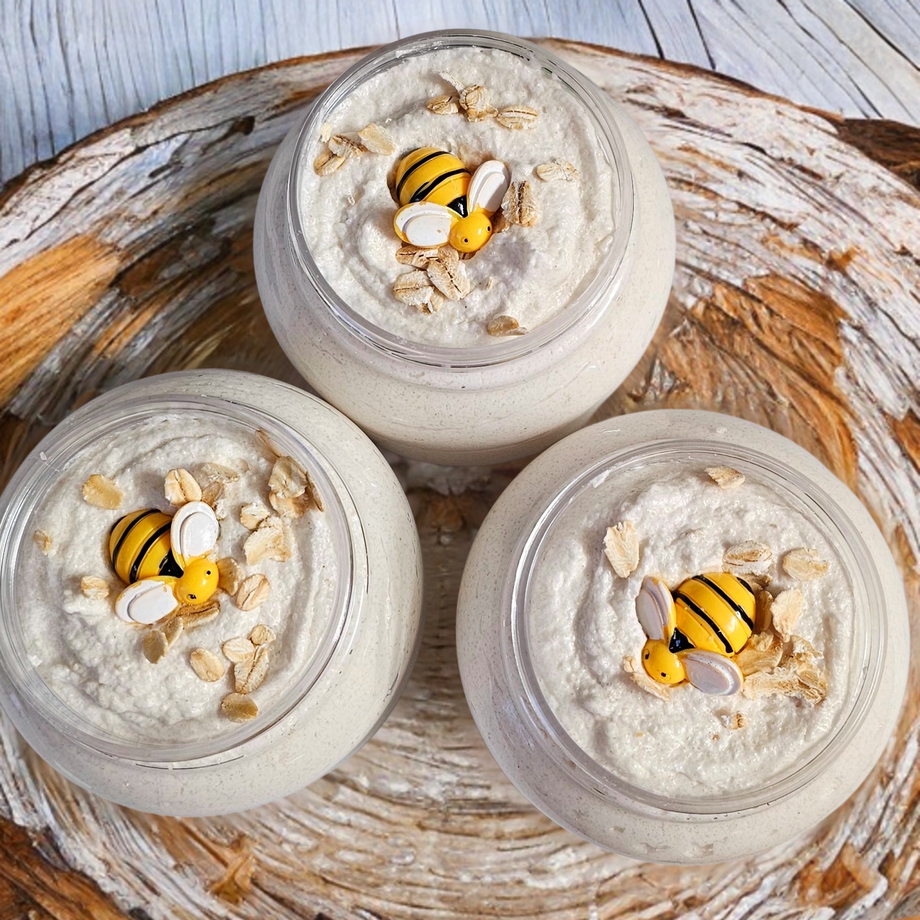 Ingredients: Sugar (Sucrose), Refined Shea Butter (Butyrospermum Parkii), Sweet Almond Oil (Prunus Amygdalus Dulcis), Colloidal Oatmeal (Avena Sativa Kernel Flour), Vitamin E Oil (Tocopherol), Glycerin, Fragrance (optional), Mica (optional).