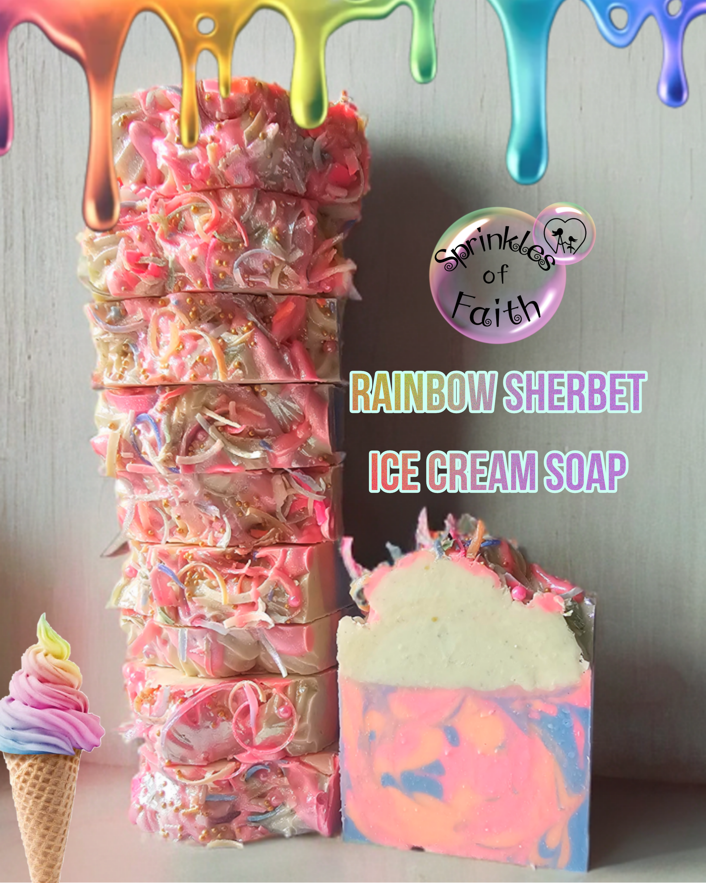 Some soaps may include: Glitter, Sprinkles, and/or Titanium Dioxide for whiteness.