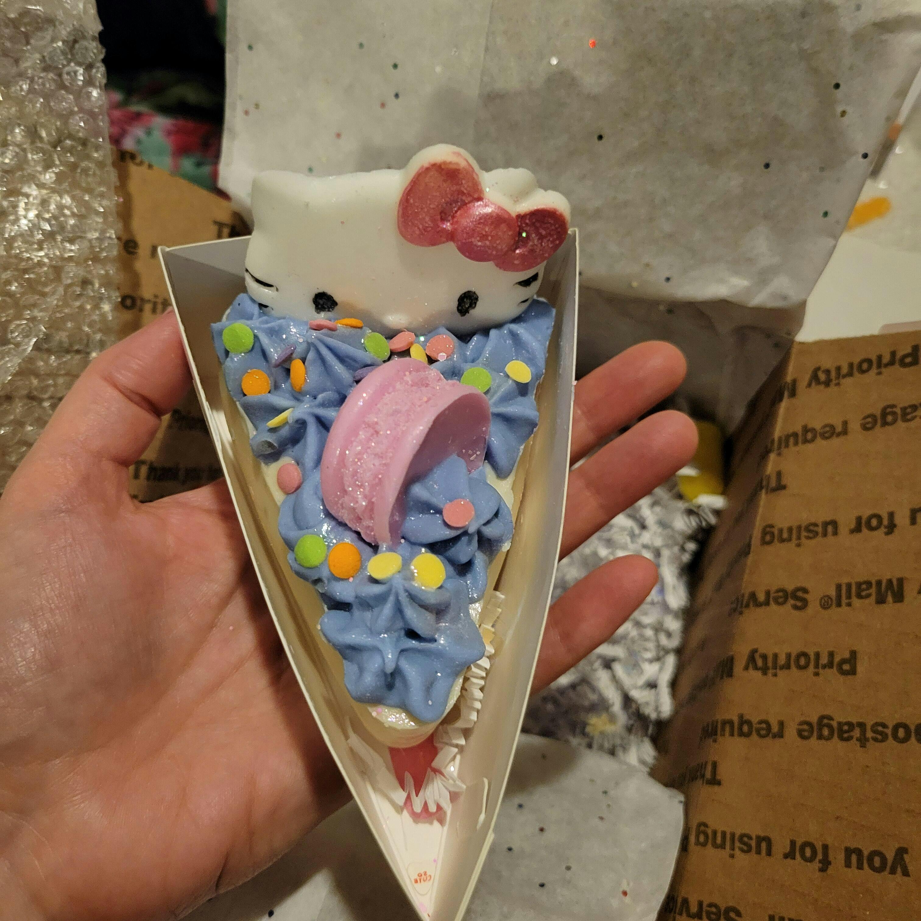 With swirls of blue frosting, pastel sprinkles, and a pink macaron on top, this soap is a total treat for your skin! ππ