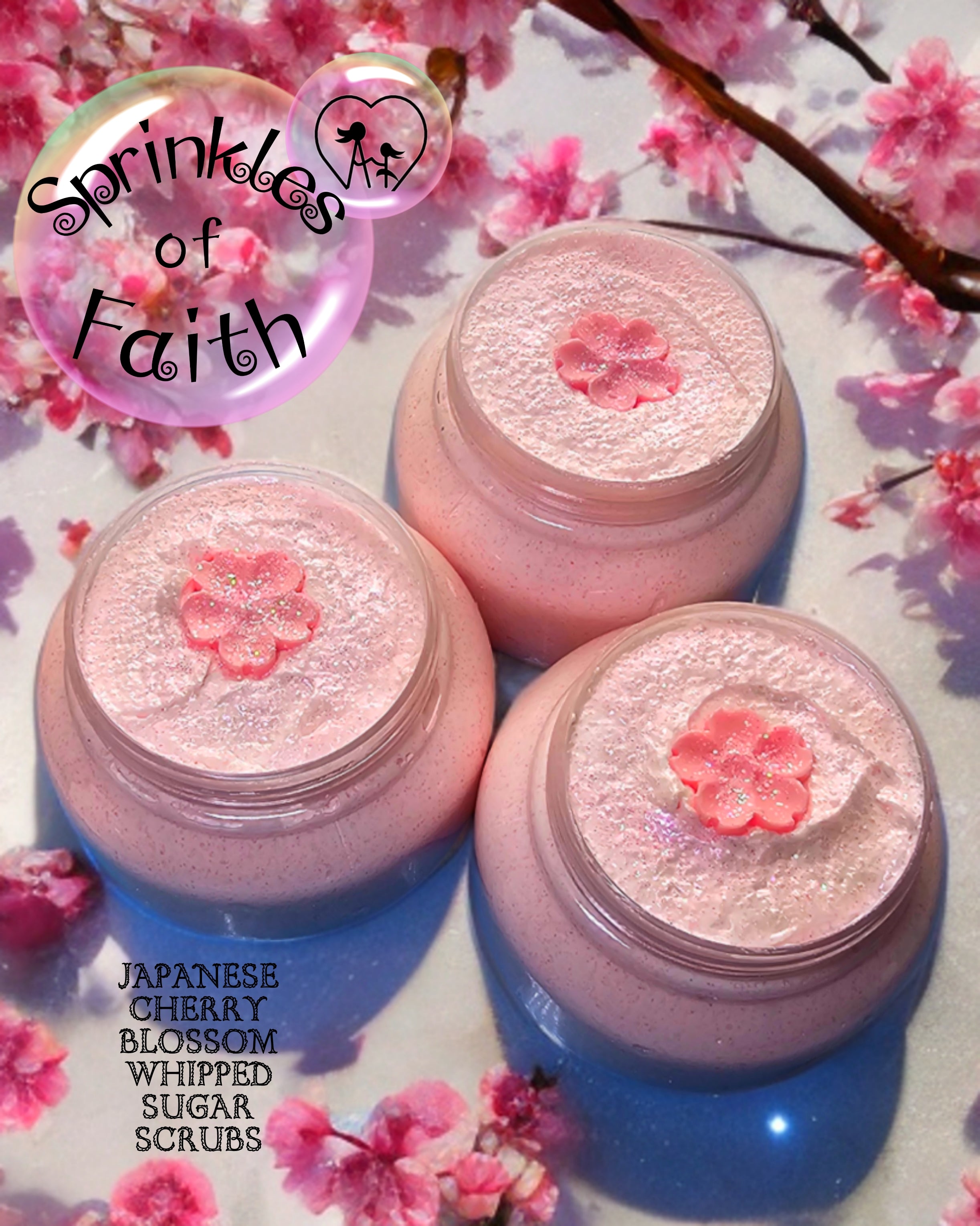 Indulge in the delicate elegance of our Japanese Cherry Blossom Whipped Sugar Scrub—a soft, dreamy blend that captures the essence of spring in bloom. This creamy, exfoliating treat gently buffs away dry skin, leaving you silky smooth and lightly fragranced with the floral beauty of Japanese cherry blossoms. Topped with a sweet little glittery blossom, it's a luxurious and cheerful addition to your skincare routine!